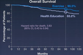 42% Lower Relative Risk of Dying with Structured Exercise vs Health Education